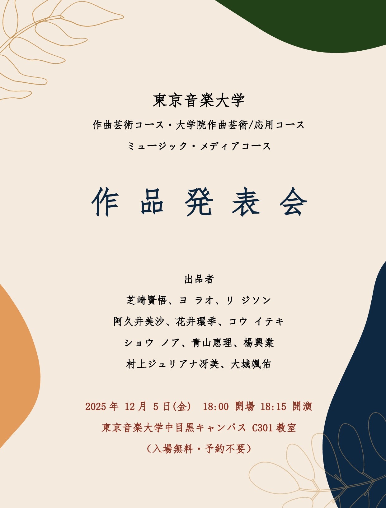 会場:Bスタジオ(東京音楽大学 池袋キャンパス)